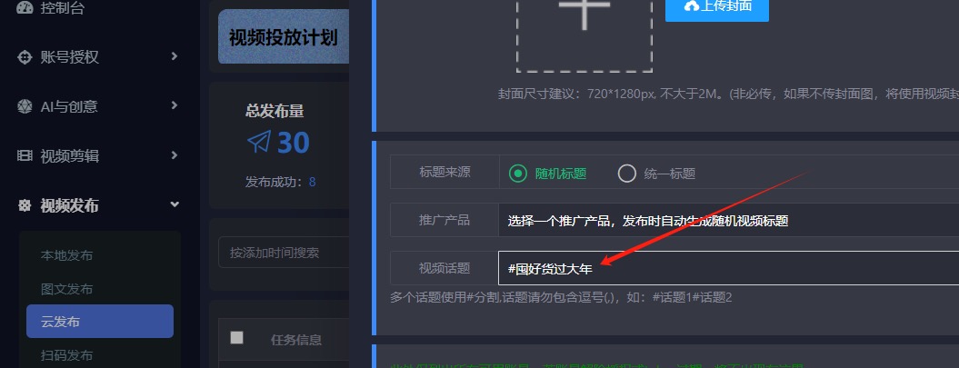 视频素材上传抖去推系统,系统自带算法,有去重机制,并且生成的成片根据素材的复用率和色块查重设置了可视化的原创度,批量剪辑生成多条已去重视频