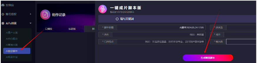 系统可以直接ai智能生成创意脚本,商家可以直接参考使用
